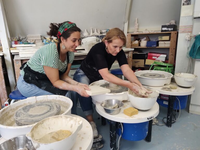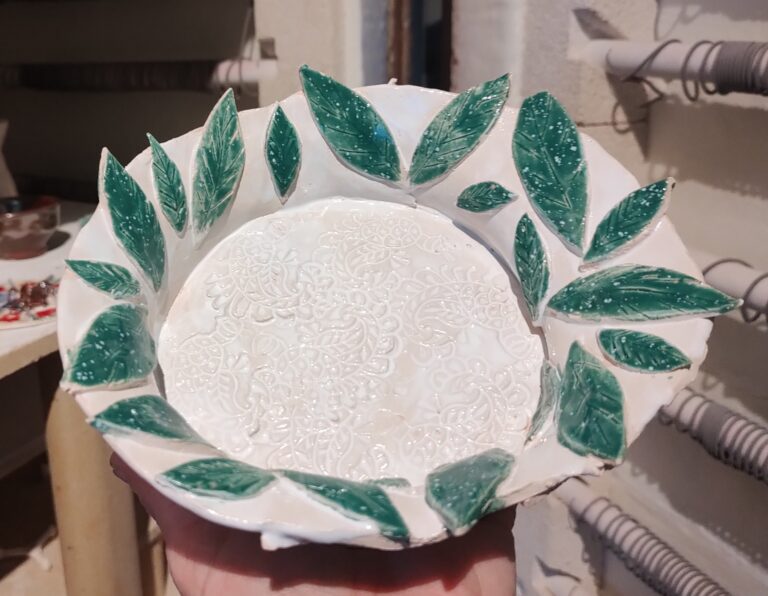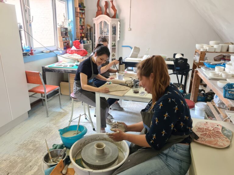 Bij deze privé workshop kan je alle gekleide kunstwerken en gedraaide potten ook nog beschilderen met gekleurde kleislib. Wij glazuren het voor het in de oven gaat zodat de kleuren mooi gaan glanzen om thuis van te genieten!