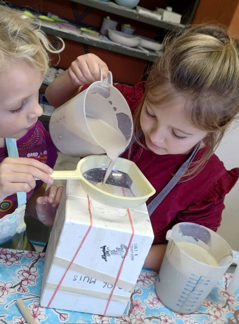 Je leert allerlei technieken om dingen te maken van klei. Zoals met rolletjes en plakken klei te werken, draaien op de pottenbakkersschijf en gieten met gietklei. Je ontwerpt je eigen vormen, alles kan! We gaan tegels ontwerpen en servies decoreren. Soms bedenken we samen een thema, zoals Egypte. Na het bakken van de kunstwerken ga je ze beschilderen met echt glazuur, na het afbakken is het klaar om mee naar huis te nemen.