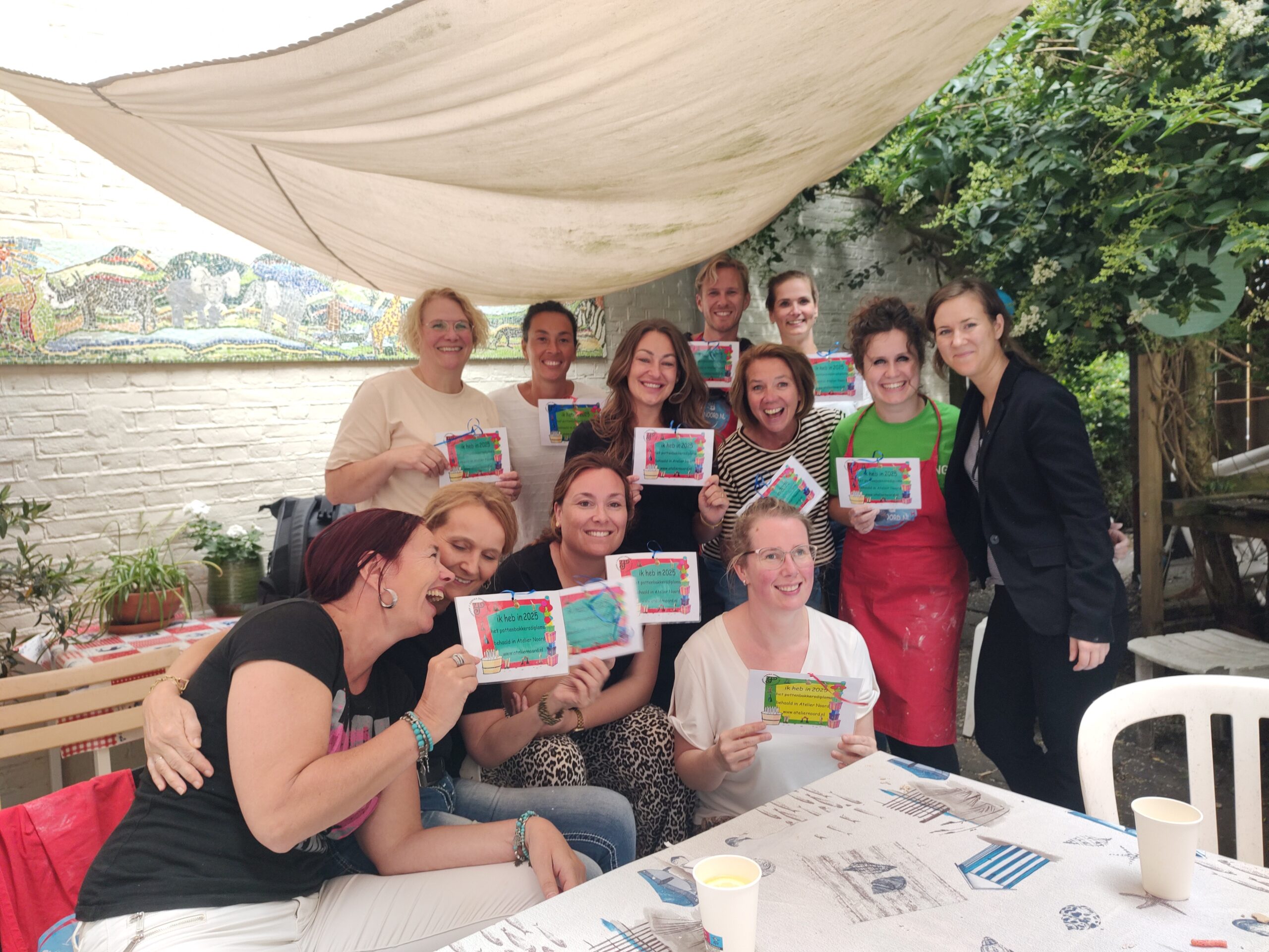 Nach einem gemütlichen Gruppenfoto werden alle Tonkunstwerke recycelt. Nachhaltig also, nichts wird gebrannt, es geht um das gemeinsame Erlebnis in einer entspannten Atmosphäre. Kommt vorbei und wir machen eine rauschende Party daraus.