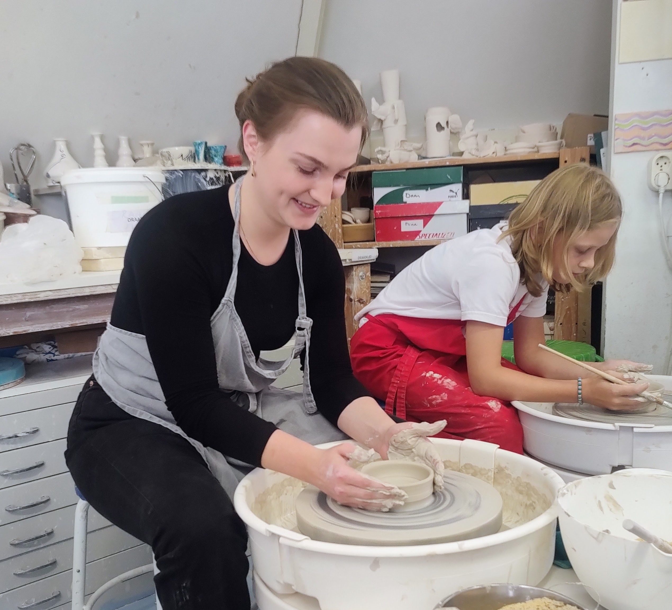 Bei diesem Workshop dreht sich alles um das Experimentieren und den Spaß mit Ton. Jeder kann nach Herzenslust drehen und formen!