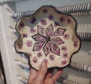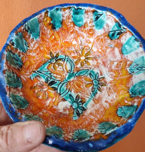 Na een paar weken zijn jullie beschilderde klei-kunstwerken droog en gaan wij het voor jullie glazuren en stoken op 1080 graden in de keramiek oven. Doordat het werk een transparant laagje glanzend glazuur krijgt, worden de kleuren heel mooi en is het watervast te gebruiken.