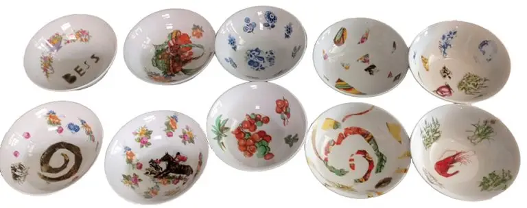 Je kan ook servies beplakken met transfers. Je kunt kiezen uit veel verschillende plaatjes van bloemen, kruiden, vissen, Delfts- blauw en nog veel meer grappige vintage afbeeldingen. Je plakt dit met een beetje water zoals een tijdelijk tatoeageplaatje op witte tegels, borden, kommen en bekers die wij in voorraad hebben. Iedereen kan het! Alles wordt vast gebakken op 830 graden in de keramiek oven. Het is dan vaatwasmachinebestendig en kan voedselveilig en duurzaam worden gebruikt om van te eten of drinken.