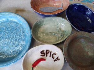 Wij leren je hoe je een potje draait op de pottenbakkersschijf. Ook kan je een schaal maken in een drukmal van gips. Wij helpen je graag iets moois te maken. Er zijn stempels om afdrukken mee te maken in de klei en veel leuke voorbeelden in het atelier.